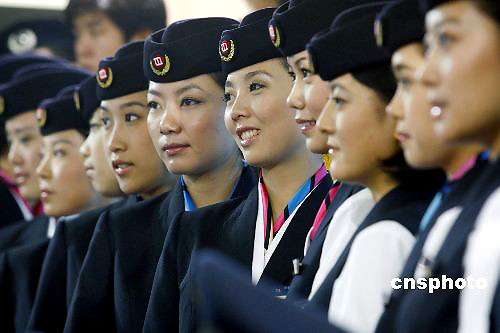 7月8日,北京地鐵4號線員工制服發(fā)布儀式在4號線中關村站舉行。此次發(fā)布的制服包括運營人員制服、維修人員工服、保安制服三大類。4號線9月下旬試運營時,此批制服將正式與乘客見面。4號線運營人員制服分為夏裝與冬裝兩個系列,以藏藍色為主色調。值得一提的是,女裝上衣與馬甲領型均采用隱形西服領,女裝襯衫采用了中式服裝的立領,突出中式元素,搭配絲巾,使著裝員工顯得更為活潑靚麗。中新社發(fā) 鄭雄增 攝