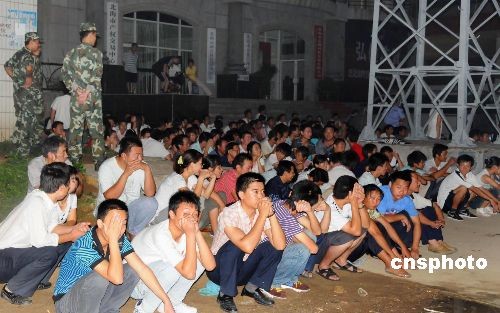 7月11日凌晨4時(shí)20分,廣西北海市再次展開(kāi)打擊非法傳銷(xiāo)集中清查行動(dòng),截止當(dāng)天中午12時(shí),執(zhí)法部門(mén)共清查非法傳銷(xiāo)聚集場(chǎng)所57個(gè),抓獲涉嫌非法傳銷(xiāo)人員840余人。其中100余人被帶回進(jìn)行審查,刑拘5人,行政拘留3人,其余涉嫌非法傳銷(xiāo)人員均作遣返原籍處理。此外,執(zhí)法部門(mén)還暫扣12萬(wàn)元涉案人民幣、3輛汽車(chē)、7臺(tái)電腦及一批非法傳銷(xiāo)資料。目前,北海警方正對(duì)相關(guān)人員進(jìn)行審查,對(duì)涉嫌違法犯罪人員將依法處理。中新社發(fā) 蘇程遠(yuǎn) 攝