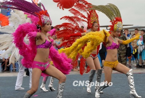2009年7月18日,以“盛世中華,歡樂沙海”為主題的2009大連國際沙灘文化節(jié)在金石灘黃金海岸隆重開幕。在為期一個月的時間內,將舉辦沙灘群眾體育系列活動、市民沙雕大賽、“快樂一家”家庭海灘趣味賽、沙灘節(jié)攝影大賽、沙灘文化節(jié)金石小姐大賽、沙灘節(jié)寶貝評選、首屆金石灘海泥狂歡節(jié)、大連發(fā)現王國夏日狂歡節(jié)等十項活動。中新社發(fā) 王錫增 攝