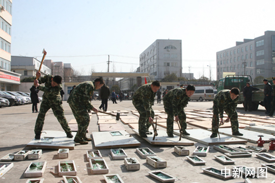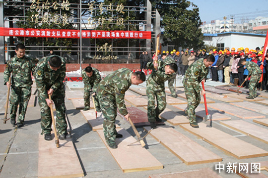 中新網(wǎng)連云港3月10日電 (蘇欣 吳茂新 朱曉穎)10日上午,在連云港市消防支隊(duì)營(yíng)區(qū)院內(nèi),由消防部門(mén)聯(lián)合工商、質(zhì)監(jiān)共同查獲的不合格滅火器、消火栓、消防應(yīng)急照明燈等520余件消防假冒偽劣產(chǎn)品被集中銷(xiāo)毀。