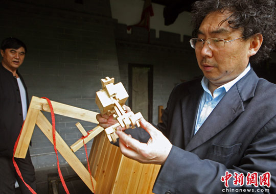 中新網(wǎng)成都6月12日電(記者楊杰)12日是中國(guó)第五個(gè)“文化遺產(chǎn)日”,在著名的三國(guó)文化圣地——成都武侯祠,眾多市民和游人感受到了“身邊的文化遺產(chǎn)”。最引人關(guān)注的是武侯祠首次向公眾展示其收藏的多具“木牛流馬”。