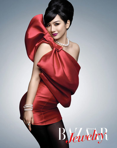高高蓬起的發(fā)髻,剪裁流暢的禮服,還有頸上那串珍珠,沒有刺眼的光芒,沒有絢麗的色彩,典雅且華麗著。如此妝容會(huì)讓你想起老上海的名媛佳麗,或是奧黛麗赫本的回眸一笑,那些雋永的美麗。然而當(dāng)女主角變成黃奕,優(yōu)雅之外更多的是驚喜。亮紫、淺棕、朱紅,這些原本與經(jīng)典無關(guān)的色彩,在她身上完美的契合,典雅之外的俏皮,精彩之后的永恒,也許,黃奕拍攝的不僅僅是中國(guó)頂級(jí)的一線雜志《芭莎珠寶》的封面大片,更是她別具一格的生活姿態(tài)。