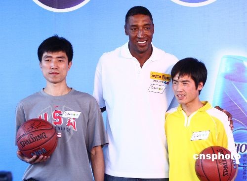 6月3日,NBA前公牛隊(duì)傳奇巨星、六次NBA總冠軍獲得者斯科特·皮蓬來到北京,為NBA中國與寶潔發(fā)起的“籃球星級體驗(yàn)賽進(jìn)社區(qū)活動”啟動助陣。活動現(xiàn)場,皮蓬更是按耐不住與中國籃球愛好者們一起切磋球藝。在接下來的兩個月中,一系列富有挑戰(zhàn)性、趣味性的籃球體驗(yàn)營與籃球挑戰(zhàn)賽將陸續(xù)在北京,上海,廣州和深圳等十大城市社區(qū)打響。中新社發(fā) 李學(xué)仕 攝