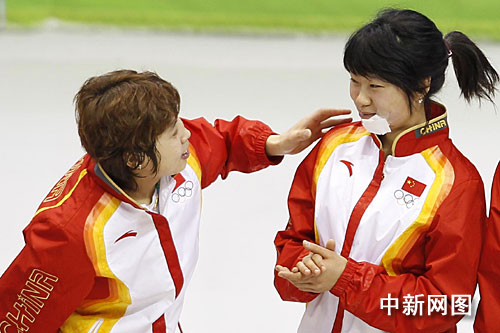 領(lǐng)獎(jiǎng)臺(tái)上,王濛不時(shí)與張會(huì)說(shuō)話,并用手指比劃著什么。中國(guó)隊(duì)領(lǐng)隊(duì)楊占武透露,張會(huì)受的只是皮外傷,沒(méi)有大的問(wèn)題。
