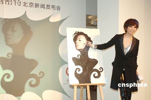 7月9日,闊別3年的張惠妹現(xiàn)身北京,攜新專輯《阿密特》與媒體見面。阿妹的新專輯策劃非常有創(chuàng)意,阿密特(A-MIT)是張惠妹的卑南族名字。阿妹還以專輯中第一首開場曲《分生》現(xiàn)場說法:“從‘張惠妹’這個音樂品牌里面分生,生出了另一個音樂品牌,《分生》就是這個意思,從張惠妹中分生出了完全獨立的一個阿密特,一個只為歌唱而活,只為音樂而生的歌手。”整張專輯音樂充滿實驗性,金曲制作人“阿弟仔”與阿妹共同操刀制作,整張專輯彌漫著BANDSOUND氛圍。創(chuàng)作陣容包括蘇打綠的青峰、創(chuàng)作人小安、名作詞人林夕、姚若龍、陳鎮(zhèn)川。更特別的是,專輯還收錄了張媽媽的作品,以及臺語歌曲和原住民的傳統(tǒng)古調(diào)。圖為張惠妹為新專輯造型畫上金色裂痕,象征阿密特破繭而出。中新社發(fā) 李學仕 攝