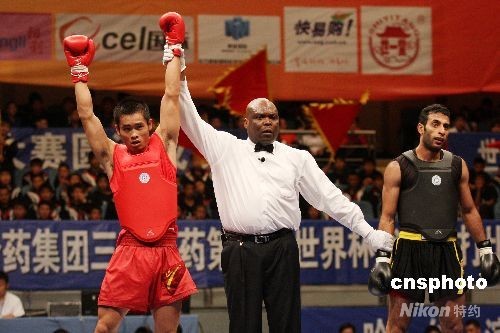 9月19日,“第四屆世界杯武術(shù)散打比賽”在黑龍江舉行。來自俄羅斯、伊朗、巴西、菲律賓、中國(guó)澳門等19個(gè)國(guó)家和地區(qū)的71名男女散打運(yùn)動(dòng)員參加比賽。中新社發(fā) 姚庭山 攝