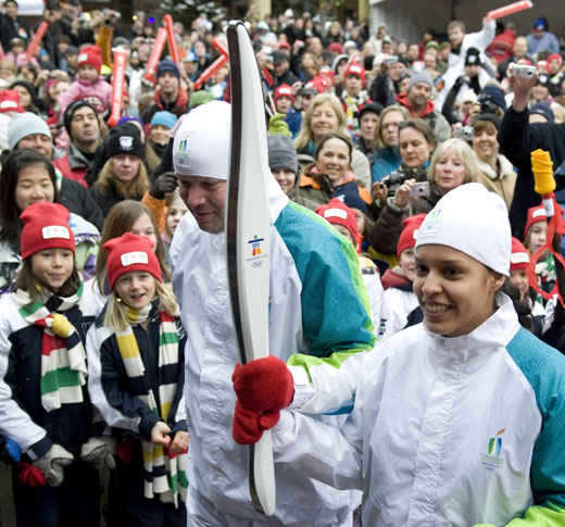 2月12日,加拿大溫哥華2010年冬奧會組委會在加西滑雪勝地惠斯勒正式公布了冬奧會火炬和火炬手服裝,從而拉開了冬奧會倒計時一周年慶祝活動的序幕。