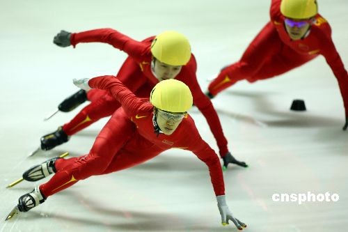 2月20日,大冬會(huì)短道速滑比賽在哈爾濱理工大學(xué)滑冰館繼續(xù)進(jìn)行。在女子500米的比賽中,中國(guó)選手表現(xiàn)神勇,包攬了該項(xiàng)比賽的前四名。其中劉秋宏(前)以44秒862的成績(jī)問(wèn)鼎冠軍,為中國(guó)隊(duì)在本屆大冬會(huì)上奪得第二枚金牌。李文文和孟曉雪分獲銀牌與銅牌,成績(jī)?yōu)?4秒929和45秒084。中新社發(fā) 富田 攝