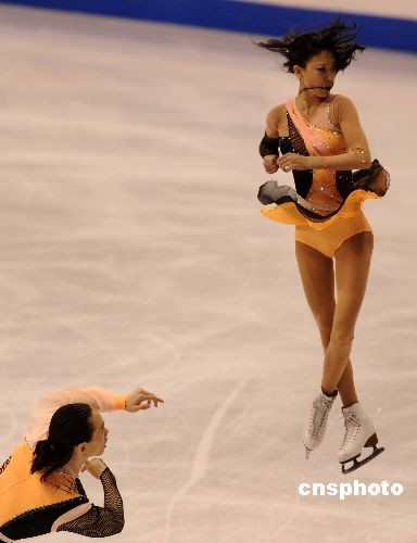 當(dāng)?shù)貢r間3月24日晚,2009年花樣滑冰世界錦標(biāo)賽在洛杉磯正式開幕。在當(dāng)天晚上舉行的雙人滑短節(jié)目比賽中,中國選手、2006年世錦賽冠軍龐清和佟健得到65.18分,排名第五。衛(wèi)冕冠軍德國組合薩維琴科和索爾科維名列第一。25日晚將舉行雙人自由滑比賽,根據(jù)兩項(xiàng)總成績決出名次。圖為龐清和佟健在比賽中。中新社發(fā) 張煒 攝