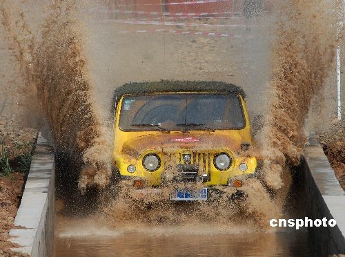 2009年4月29日,“景陽(yáng)春杯”越野車王爭(zhēng)霸賽在發(fā)動(dòng)機(jī)的咆哮聲中拉開帷幕。本次大賽的最大魅力在于極強(qiáng)的觀賞性和參與性,賽手需要通過(guò)越野賽道內(nèi)36組障礙,尤其需要突破場(chǎng)地內(nèi)極具粘性的泥地,是通常項(xiàng)目無(wú)法比擬的!熬瓣(yáng)春杯”越野車王爭(zhēng)霸賽,以宣傳賽事以及山東文化產(chǎn)業(yè)及旅游產(chǎn)業(yè)的繁榮景象為主題,全方位展示汽車文化的獨(dú)有魅力及無(wú)限的發(fā)展空間!熬瓣(yáng)春杯”越野車王爭(zhēng)霸賽,系山東省體育總局主辦, 安丘市人民政府、山東青云國(guó)際旅游度假區(qū)股份有限公司承辦的跨度為五個(gè)月的大型賽事。中新社發(fā) 王曉光 攝