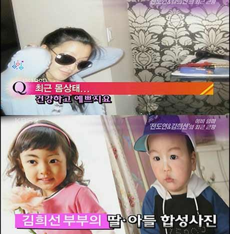 預(yù)產(chǎn)期在09年1月的金喜善近期被頻頻曝光,不光有好友在博客里面公開了她的最新照片,婆婆更對媒體表示將有個(gè)小孫女。日前,韓國網(wǎng)絡(luò)上還出現(xiàn)了號稱“金喜善未來寶寶模樣”的相關(guān)合成照。