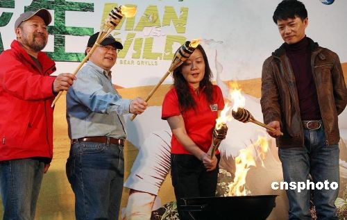3月18日,Discovery探索頻道在北京推出全球觀眾狂熱追捧的系列探險(xiǎn)節(jié)目《荒野求生》(Man VS Wild)播映儀式,將給中國(guó)地區(qū)觀眾帶來(lái)終極野外生存指南,同時(shí)舉行中國(guó)特輯《荒野求生》啟動(dòng)儀式,《荒野求生》節(jié)目主持人兼探險(xiǎn)家貝爾吉羅斯亦將8月來(lái)中國(guó),首次拍攝《荒野求生》中國(guó)特別專輯!痘囊扒笊分袊(guó)特輯將于2010年2月與中國(guó)電視觀眾見面,并將在Discovery探索頻道全球電視網(wǎng)播出。電視劇《我的團(tuán)長(zhǎng)我的團(tuán)》主演段奕宏亮相中國(guó)特輯《荒野求生》啟動(dòng)儀式。中新社發(fā) 錢興強(qiáng) 攝