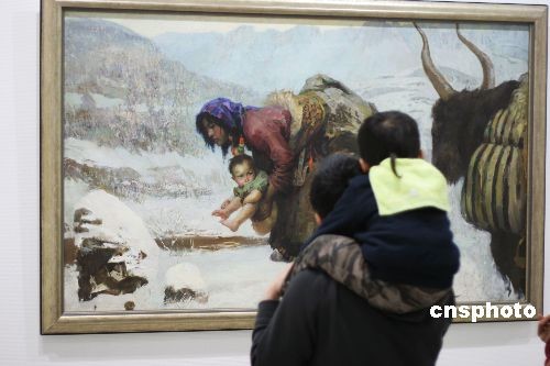 4月5日,武漢市民在湖北省藝術(shù)館欣賞中國(guó)美術(shù)館館藏精品!伴L(zhǎng)風(fēng)萬(wàn)里西部情——中國(guó)美術(shù)館館藏精品展”正在湖北省藝術(shù)館展出,114件國(guó)家級(jí)美術(shù)藏品首次亮相武漢。該展由湖北省藝術(shù)館與中國(guó)美術(shù)館共同主辦,是文化部支持西部的重要文化活動(dòng)之一。該展此前曾在陜西、上海、廈門(mén)展出,武漢的展覽到4月26日結(jié)束。中新社發(fā) 孫新明 攝