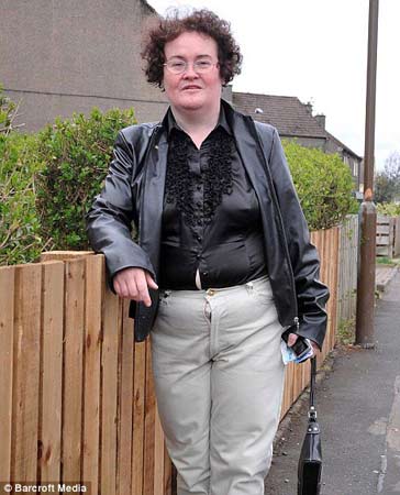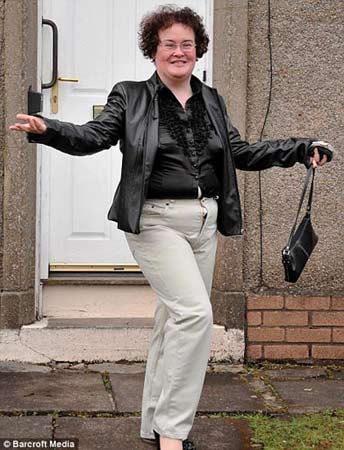 6日,經(jīng)過(guò)一番打扮,蘇珊走出家門。面帶招牌式的笑容,蘇珊在自家門前大擺POSE,讓媒體記者拍個(gè)夠。開心的蘇珊并沒(méi)有注意到當(dāng)時(shí)的形象并不得體——她忘記將褲子的拉鏈拉上。由于褲子太緊而拉鏈又沒(méi)拉,里面的衣服大有往外擠的陣勢(shì)。老式黑色襯衣緊緊地繃在她身上,更凸顯了她的贅肉。