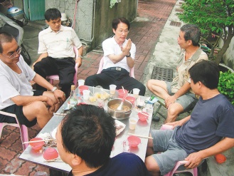 中新網(wǎng)6月29日電 據(jù)臺(tái)灣《聯(lián)合報(bào)》報(bào)道,中國(guó)國(guó)民黨大臺(tái)南市長(zhǎng)參選人郭添財(cái)日前深入臺(tái)南市南區(qū),走訪21名國(guó)民黨籍里長(zhǎng)。郭添財(cái)與里長(zhǎng)伯、民眾一起在庭院用餐、聊天、聽取建議,展現(xiàn)草根性與親和力。