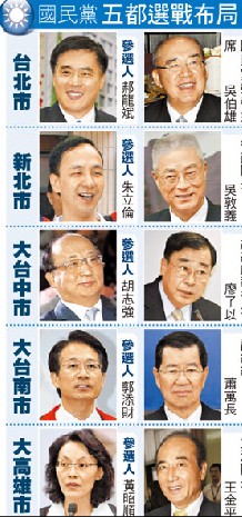 據(jù)了解,黨中央規(guī)劃的陣容,大高雄市由王金平出任,臺北市由吳伯雄擔(dān)任,新北市交給吳敦義負(fù)責(zé),大臺中市是由曾任臺中縣長的廖了以擔(dān)綱,大臺南市則由出身嘉義市的蕭萬長出馬。