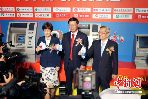 中新網(wǎng)臺(tái)北6月30日電(記者 黃少華)6月30日,中國銀聯(lián)、臺(tái)灣財(cái)金公司、臺(tái)灣銀行公會(huì)舉行記者會(huì),宣布銀聯(lián)卡在臺(tái)ATM提領(lǐng)新臺(tái)幣、預(yù)借現(xiàn)金及余額查詢服務(wù)正式開通。
