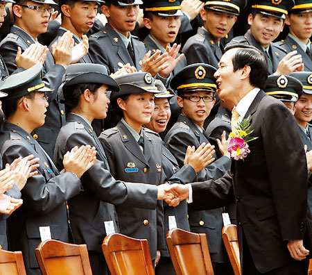 馬英九說,軍校畢業(yè)生將來都是革命軍人,不要被人看不起,看輕。將來要壯大自己,保衛(wèi)別人,要有使命感、榮譽感。