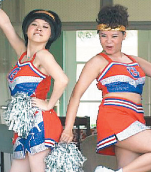 林韋君看著鏡中的自己,忍不住用“檳榔西施”口吻問(wèn)大家說(shuō):“偶這樣漂亮嗎?”無(wú)獨(dú)有偶,阿寶曾寶儀在戲劇《倪亞達(dá)》中也犧牲形象和僅雯穿拉拉隊(duì)服,為“立委”選舉拉票。