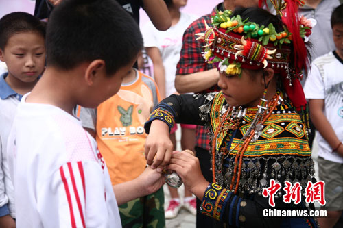記者在現(xiàn)場看到,來自臺灣阿里山鄉(xiāng)達邦國小和屏東縣泰武國小的28名小朋友,為遭受“5.12”地震的北川羌族民眾戴上平安珠手鏈。來自臺灣屏東縣三地門鄉(xiāng)的王蕓說,希望平安珠能保四川災區(qū)羌族人民平安。北川羌族民眾為參訪團代表敬獻了羌紅,將平安送給臺灣“8.8”風災少數(shù)民族人民。