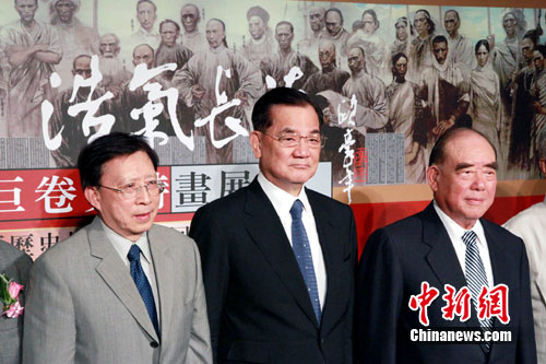 中新社臺(tái)北7月7日電(記者 黃少華)7日是中國抗日戰(zhàn)爭(zhēng)全面爆發(fā)73周年。由大陸民間繪制、長(zhǎng)逾800米的“浩氣長(zhǎng)流•抗戰(zhàn)巨卷史詩畫展”在臺(tái)北開幕。中國國民黨榮譽(yù)主席連戰(zhàn)、臺(tái)灣文化總會(huì)會(huì)長(zhǎng)劉兆玄、曾參與抗戰(zhàn)的前臺(tái)灣軍方參謀總長(zhǎng)郝伯村出席致辭時(shí)提到,那場(chǎng)為了國家民族尊嚴(yán)與生存而艱苦奮斗的抗戰(zhàn)歷史不應(yīng)忘記。兩岸當(dāng)共同弘揚(yáng)中華文化,促進(jìn)和平發(fā)展。