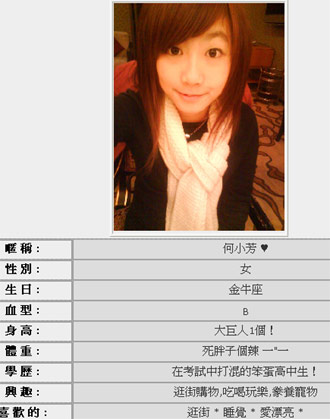 何懿芳在自己的部落格(博客)中,傳了許多俏皮的自拍照,散發(fā)出甜美俏皮的氣質(zhì),即使素顏看起來也天生麗質(zhì),而文章中,以“何老頭”來稱呼爸爸,不難感受出他們父女的感情深厚。