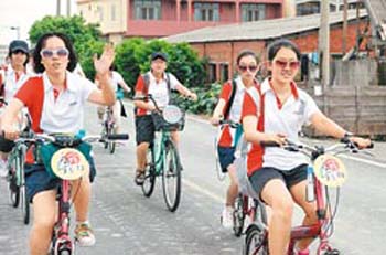 中新網(wǎng)7月21日電 據(jù)臺(tái)灣《中國(guó)時(shí)報(bào)》報(bào)道,“臺(tái)灣農(nóng)村太有趣了!”一百五十余名大陸中學(xué)生,20日騎單車參訪臺(tái)灣埔鹽鄉(xiāng),他們?cè)卩l(xiāng)間小道穿梭,除飽覽農(nóng)村風(fēng)光,也體驗(yàn)農(nóng)民接待熱忱;師生們都認(rèn)為這樣的行程安排非常有意義。