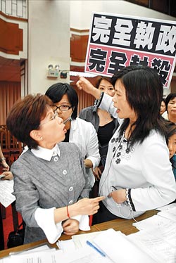 前年10月,管碧玲不滿洪秀柱在“立法院”會上,搶走其助理帶來的抗議標(biāo)語,并誤傷了助理眼睛,管碧玲當(dāng)場情緒失控,上前掌摑洪秀柱,洪秀柱也不甘示弱回捏管碧玲臉頰。