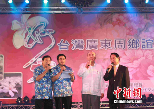 中新社新竹8月18日電 (記者 張傳熙)兩岸一家親,客家情亦濃。廣東省省長黃華華、中國國民黨榮譽(yù)主席吳伯雄18日晚在臺灣客屬聚居地——新竹縣聯(lián)袂登臺獻(xiàn)唱。他們高歌一曲《客家本色》,受到出席晚宴的數(shù)百名當(dāng)?shù)剜l(xiāng)親和嘉賓的熱烈鼓掌與喝彩。
