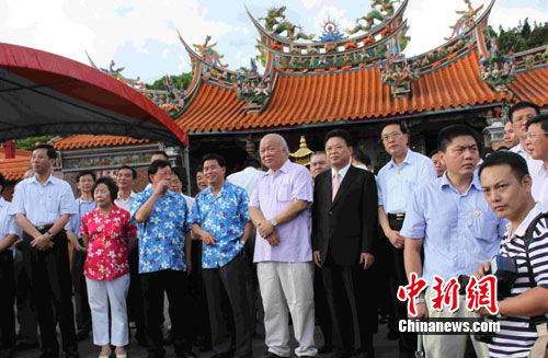 中新網(wǎng)新竹8月18日電(記者 張傳熙)率領(lǐng)廣東省經(jīng)貿(mào)文化交流團訪臺的黃華華省長今天下午從臺北抵達新竹縣展開尋親、訪友的“鄉(xiāng)情之旅”。下午,在新竹縣領(lǐng)導(dǎo)人邱鏡淳及眾多鄉(xiāng)親的陪同下,黃華華到當(dāng)?shù)卮砜图椅幕牧x民廟行禮、祭拜。