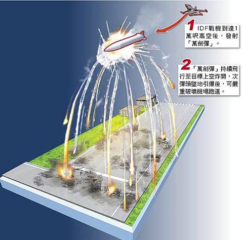 林郁方發(fā)布新聞稿表示,“萬劍”系統(tǒng)內裝有上百枚次彈頭,具遠距遙攻能力,除可用于破壞、癱瘓機場跑道外,對部隊集結區(qū)、港口裝卸區(qū)、飛彈及雷達陣地等,也有極大殺傷力。