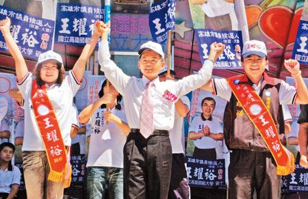 為防“棄黃保楊”效應(yīng)發(fā)生,金溥聰日前下令禁止黨籍民意代表與楊秋興“私通”,然而,國(guó)民黨提名的市議員參選人王耀裕昨日成立競(jìng)選總部,卻邀楊秋興到場(chǎng)并站臺(tái)。