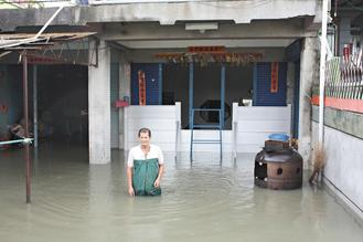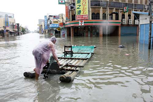 在隘寮溪沿岸的萬(wàn)丹鄉(xiāng),也因溪水溢流成了澤國(guó),“去年‘莫拉克’淹水也沒這次大!”鄉(xiāng)長(zhǎng)郭寶聯(lián)說,這次興化部落全村水深高過一層樓,以往從來沒有過;還有甘棠村從未淹水,這次也躲不過,警消救出上百名受困民眾。