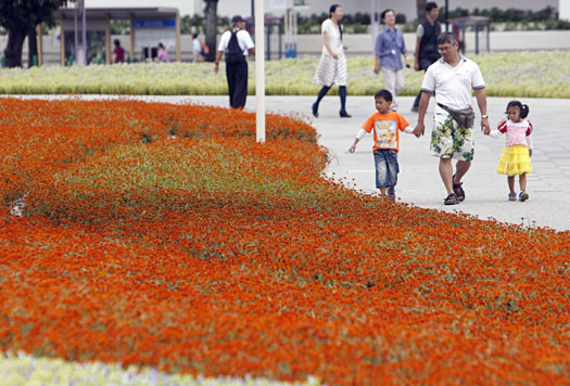 中新網(wǎng)10月19日電 據(jù)臺灣《中華日報》報道,臺北花博會第二階段測試昨天因逢禮拜一,三個園區(qū)共有近兩萬人次參觀,夢想館與夢想劇場最少需排隊三十分鐘才能進入,其余展館則動線都順暢。