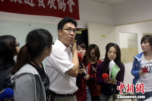 記者22日晨來到位于臺北市萬華區(qū)的承擔(dān)此次游線的創(chuàng)意旅行社。據(jù)證實(shí),自昨天下午起,就一直無法與該團(tuán)隊(包括司機(jī)、導(dǎo)游和領(lǐng)隊)的任何一個人取得聯(lián)系。圖為該旅行社董事長、臺北市旅行商業(yè)同業(yè)公會理事李奇岳向媒體介紹相關(guān)情況。