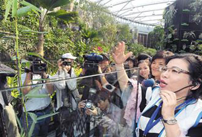 陳文茜主動向花博報名導覽志工,10日現身未來館為民眾解說。她說,每天電視上都看到夢想館參觀民眾大排長龍,但她認為其它展館也別具特色,例如最能代表臺灣花卉精神的,就是未來館。