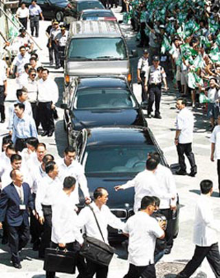 “卸任正副領(lǐng)導(dǎo)人禮遇條例”原本規(guī)定,卸任者每月致送禮遇金25萬元,至于供聘用處理事務(wù)人員、司機,及辦公室所需費用,則依第一年800萬,以后每年金額逐年遞減100萬,最低每年500萬直到禮遇期限屆滿為止。當局“國安局”則另提供8到12名隨扈,只維護其在島內(nèi)的安全。