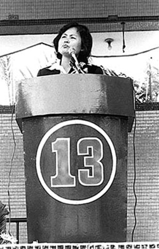 如果沒(méi)有家族勢(shì)力作后盾,悲情牌就成了女性打入政壇的必勝法寶。1979年“美麗島”事件發(fā)生后,“代夫出征”風(fēng)行一時(shí),當(dāng)時(shí)被國(guó)民黨當(dāng)局逮捕且判刑的張俊宏、姚嘉文、林義雄等人,他們的妻子均在各種選舉中高票當(dāng)選。1984年陳水扁因“蓬萊島案”入獄后,妻子吳淑珍也高票當(dāng)選“立委”。