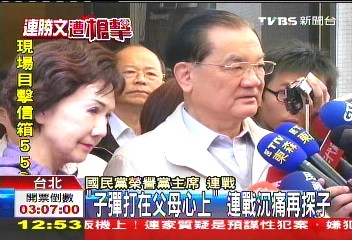 連戰(zhàn)表示,身為父母疼在心里,彈打在連勝文身上,但疼在家人的心里,也疼在社會各界大家的心里,非常不舍。