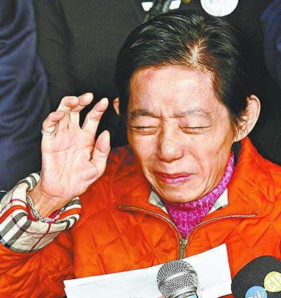 2月10日,臺北地方法院再次傳喚陳水扁之妻吳淑珍到庭應訊,繼續(xù)審理前臺灣地區(qū)領導人陳水扁家所涉弊案。吳淑珍在連續(xù)17次拒不出庭后,當日終于現身,并在兩個半小時的庭訊結束后,發(fā)表簡短“道歉聲明”,表示今后將“隨傳隨到”。圖為吳淑珍庭訊結束后離開臺北市地方法院時,媒體圍追。 中新社發(fā) 路梅 攝