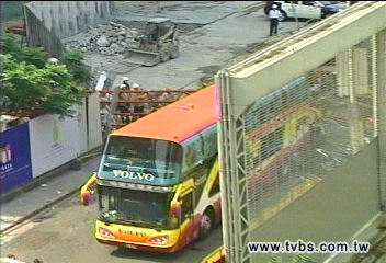 臺北市信義區(qū)松高路工地一架起重機從37樓高墜落砸中游覽車尾部,車上坐著25名廣東旅游團團員,當時他們用完午餐打算前往101大樓參觀,沒有想到意外從天而降,游覽車車體已經(jīng)變形。