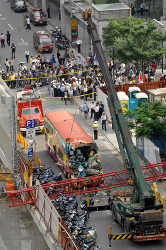 事發(fā)后,臺北市長郝龍斌已親臨現(xiàn)場關(guān)切,負責(zé)接待的旅行社主管也都趕赴意外現(xiàn)場及醫(yī)院。