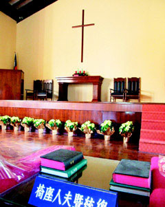 據(jù)《聯(lián)合報(bào)》六日?qǐng)?bào)道,日月潭管理處處長(zhǎng)曾國(guó)基表示,“耶穌堂”位在水社的荷梅園中,管理處近日推出優(yōu)惠結(jié)婚方案,新人還可漫步廊道,飽覽日月潭的湖光山色,晚間欣賞水舞表演。而近日正逢櫻花季,走過(guò)櫻花隧道到教堂結(jié)婚,別具風(fēng)味。