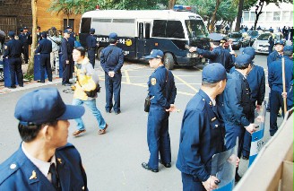 警察不敢掉以輕心,一字排開并分持盾牌、警棍將臺北地院四周團(tuán)團(tuán)圍起,進(jìn)行管制,還有便衣刑警錄像搜證。特勤維安人員除穿插在警方陣勢中,法庭內(nèi)外更是到處可見。