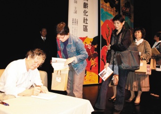 周美青說(shuō)很喜歡讀黃春明的詩(shī)。演講結(jié)束,聽(tīng)眾不只排隊(duì)請(qǐng)黃春明簽書(shū),不少人也跑到周美青座位前,請(qǐng)她簽名。