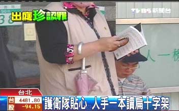 中新網(wǎng)2月12日電 臺(tái)灣TVBS12日?qǐng)?bào)道說,做陳幸妤以及扁家的護(hù)衛(wèi)隊(duì)真的“太窩心”,除了阻隔記者的問話,還得研讀起阿扁著作“臺(tái)灣的十字架”。