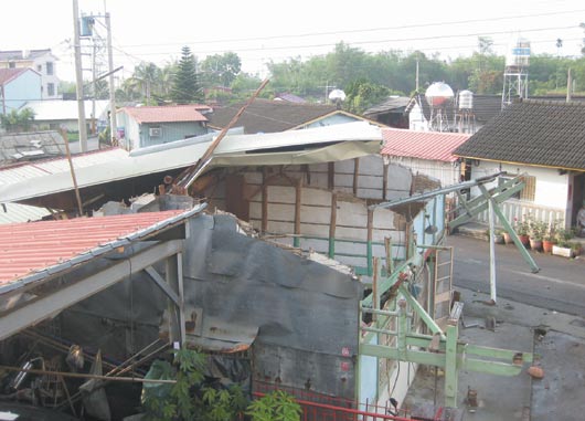 中新網(wǎng)4月21日電 據(jù)臺灣《聯(lián)合報》報道,臺南縣白河鎮(zhèn)大林里20日下午疑出現(xiàn)龍卷風(fēng),瞬間強(qiáng)大風(fēng)力,吹毀九戶民宅屋頂,婦人吳郭幼家的鐵皮屋頂整個被掀開,一百八十度翻轉(zhuǎn)后,再倒蓋在房子上,“全部過程不到一分鐘”,受災(zāi)民眾談起仍難掩驚嚇。