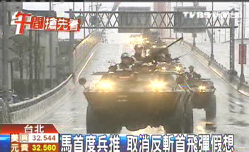 凌晨5點(diǎn),天色才剛亮起,負(fù)責(zé)保衛(wèi)博愛特區(qū)的憲兵202指揮部大批甲車緩緩開出,第二輛六輪甲車正是到中興寓所護(hù)送馬英九的萬(wàn)鈞車,這是馬英九上任后,首度主持兵推。