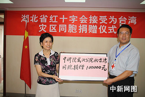 除上述100萬元人民幣的捐款外,連日來,已陸續(xù)有武漢市民在湖北省紅十字會(huì)登記捐贈(zèng)。8月19日下午,湖北省紅十字會(huì)機(jī)關(guān)也開展了募捐活動(dòng),湖北省紅十字會(huì)專職副會(huì)長毛三元帶頭捐款500元人民幣。中國科學(xué)院武漢分院黨組書記、常務(wù)副院長陳平平專程趕到湖北省紅十字會(huì),代表該院向臺(tái)灣同胞捐贈(zèng)10萬元人民幣。
