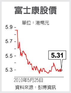 據(jù)臺灣《中國時報》報道,富士康昨日股價重挫近一成,終場下跌0.57港元、收5.31港元,跌幅達(dá)9.69%。